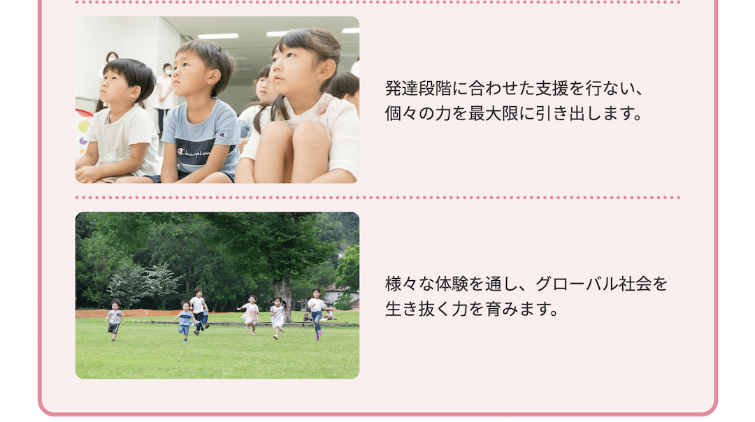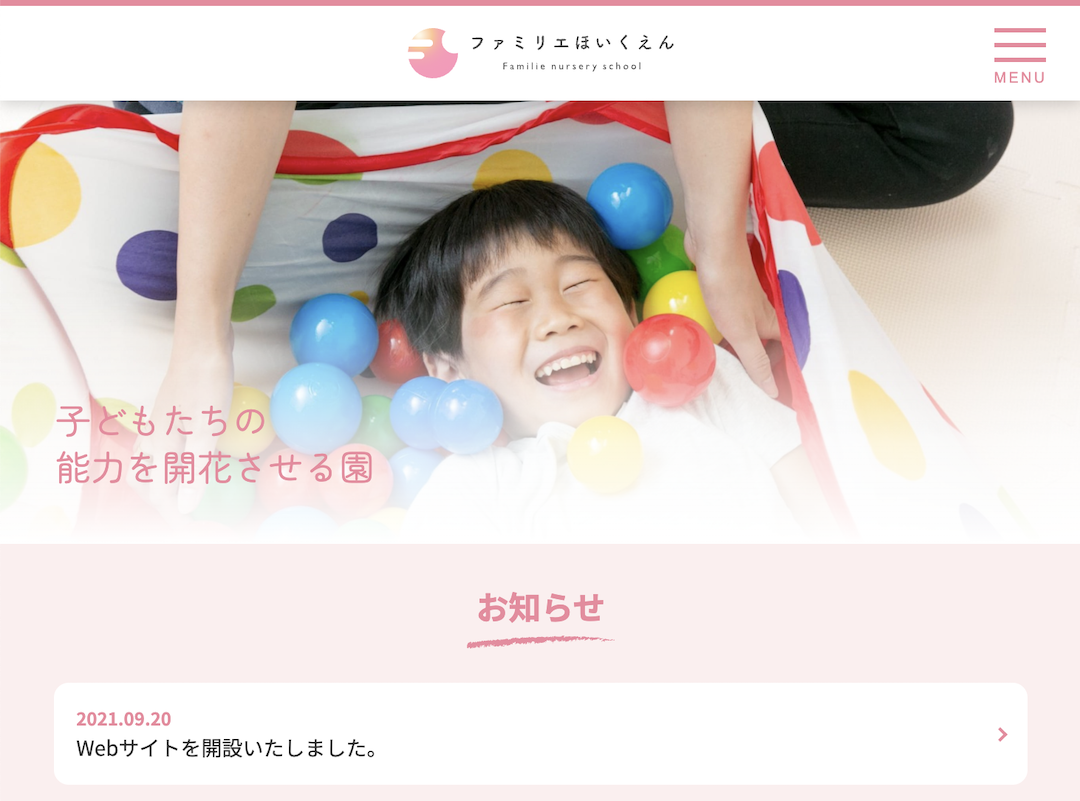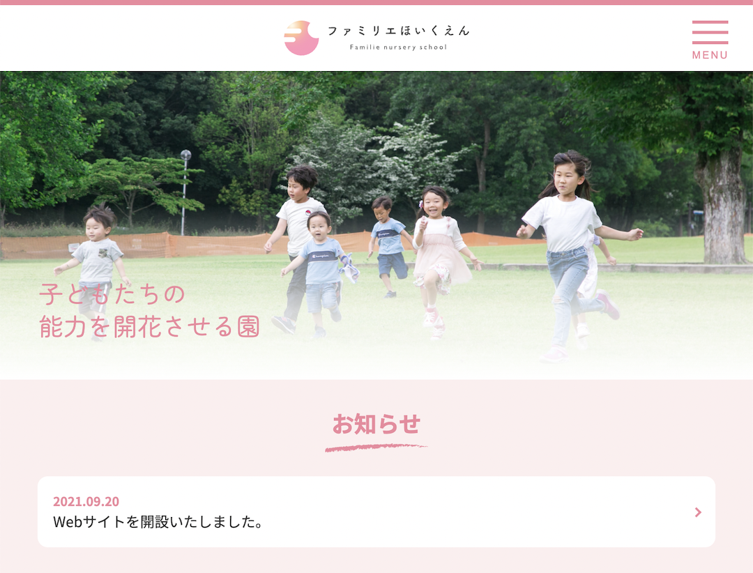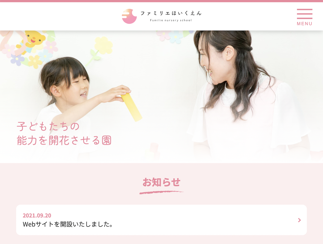 ファミリエほいくえん 準認可保育園「ファミリエほいくえん」のホームページ用の撮影を担当しました。 Web:https://f-child.com/場所:群馬県太田市撮影年:2021年 Categories: Corporate Date: 2024年12月1日